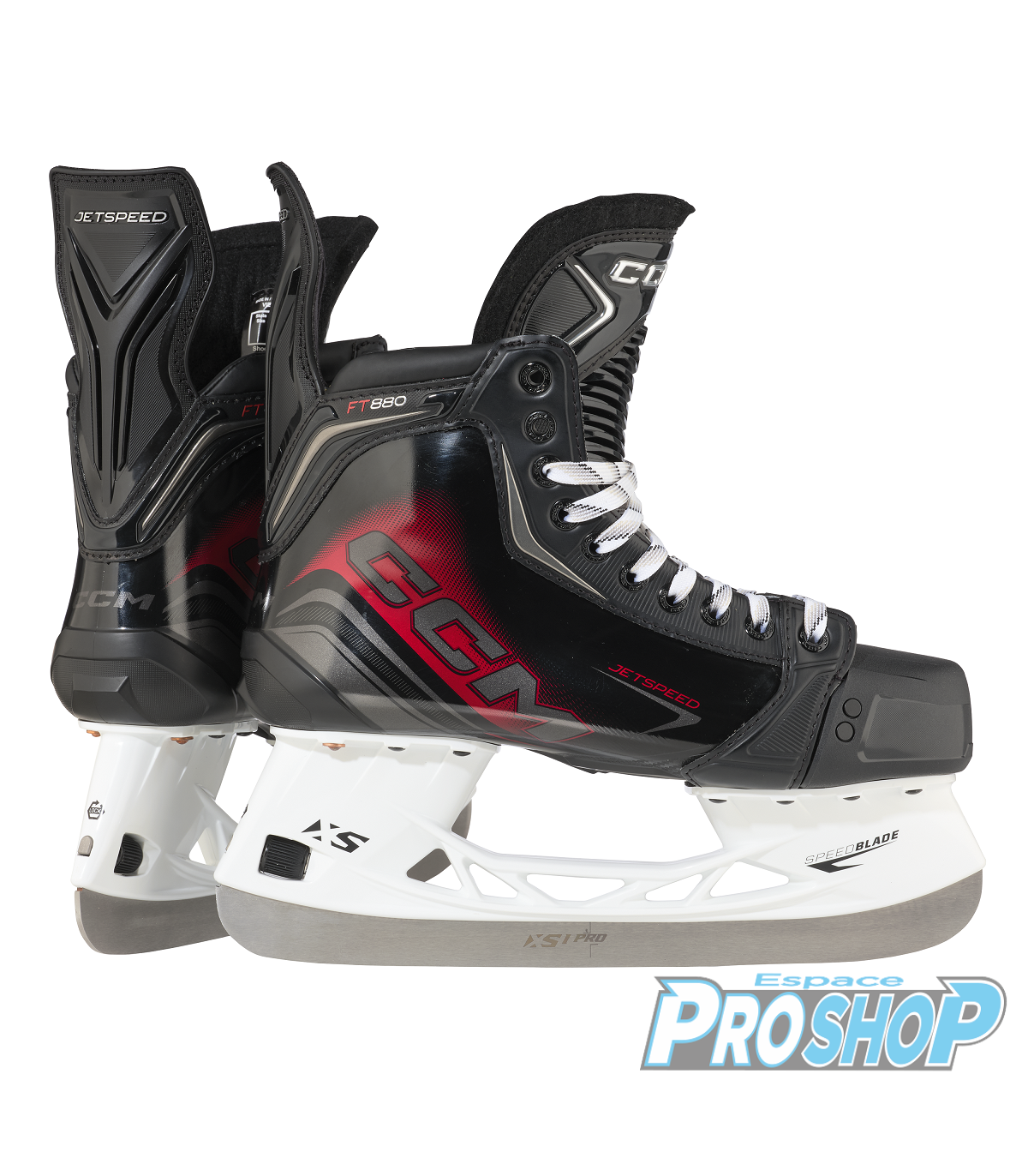 Les patins JETSPEED FT880 offrent vitesse et confort de haut niveau grâce à une botte monocoque optimisant le transfert d’énergie et une doublure Totaldri Pro qui garde les pieds au sec. Le nouvel angle d'attaque offre une position d'attaque plus naturelle, permettant aux joueurs d'être plus rapides et de se sentir plus explosifs dans leurs foulées. La mousse à mémoire ADPT assure un ajustement précis, tandis que la languette en feutre de 7 mm avec protection injectée contre la pression des lacets apporte un meilleur soutien. Le porte-lame SpeedBlade XS avec système BladeLock métallique permet des changements de lame rapides, et les lames en acier inoxydable XS1 Pro offrent de meilleurs angles d’attaque et un plus grand contrôle.