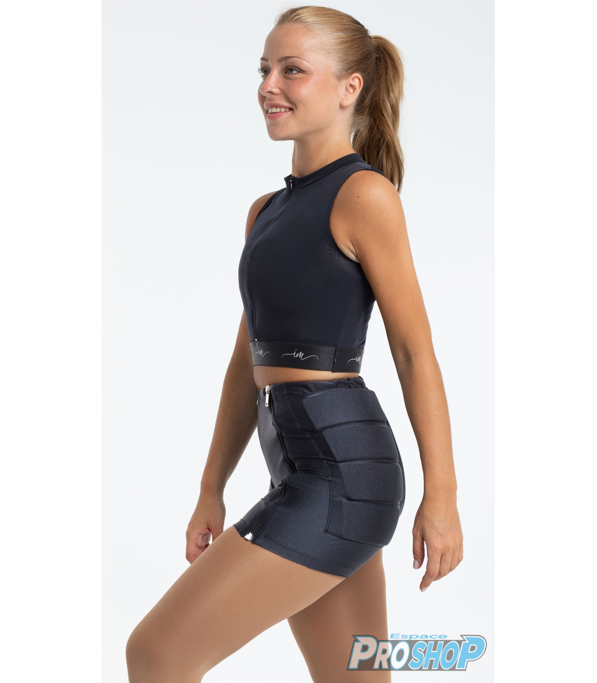 Rembourrage au niveau du coccyx segmenté et les hanches avec des coussins pour les chutes durs.