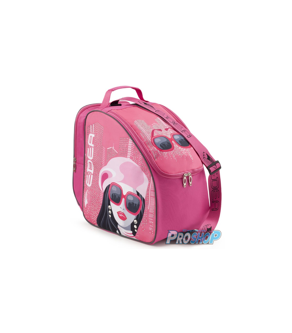 Le sac de skate Signorina présente un design rose doux avec une ligne d'horizon cristallisée composée de plus de 3000 cristaux et un ensemble de boucles d'oreilles en cristal, ce qui en fait le choix parfait pour ceux qui veulent briller avec style.